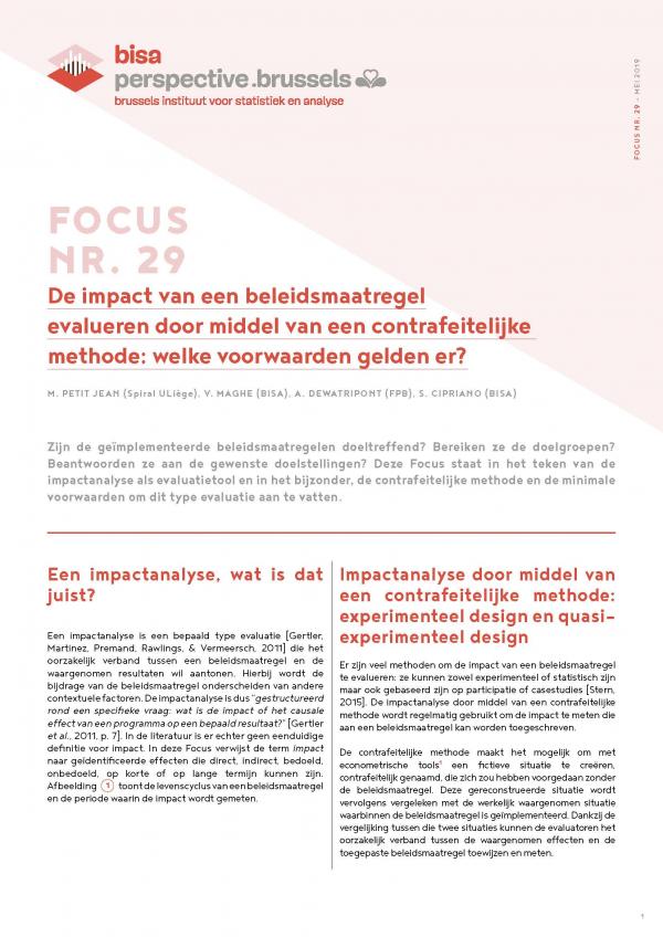 Een dergelijke evaluatie is echter alleen mogelijk onder bepaalde voorwaarden. Ontdek er alles over in Focus nr. 29 van het BISA ‘De impact van een beleidsmaatregel evalueren door middel van een contrafeitelijke methode: welke voorwaarden gelden er?'