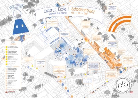 Een Schoolcontract is bedoeld om scholen zo goed mogelijk te laten integreren in hun omgeving en hun wijk, door de gepaste inrichting van de schoolsite en de onmiddellijke omgeving ervan. Het is een partnerschap dat afgesloten is tussen het Brussels Hoofdstedelijk Gewest, de betrokken school, de organiserende macht van de school en de gemeente waar de school gelegen is. Het betrekt ook wijkverenigingen, de inwoners, de gebruikers van de school en de beheerders van de collectieve voorzieningen.