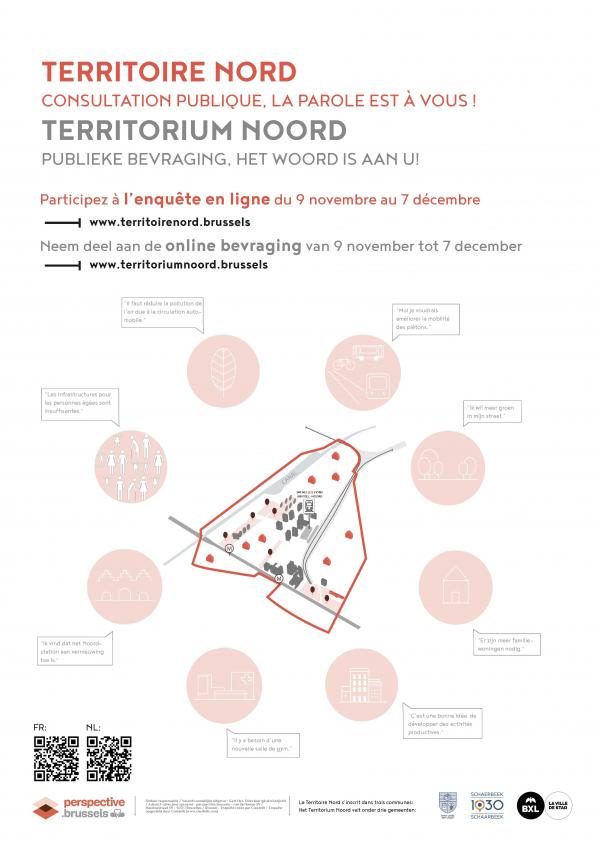 De minister-president van het Brussels Hoofdstedelijk Gewest en de staatssecretaris voor Stedenbouw lanceren een publieke bevraging voor het Territorium Noord. "Het doel van deze bevraging is om te werken in het hart van de wijken, in nauwe samenwerking met de bewoners en zo vroeg mogelijk in het proces van de projecten. Dit zal toekomstige ontwikkelaars in staat stellen om zo goed mogelijk aan de behoeften van het gebied te beantwoorden en een permanente uitwisseling met de bevolking te garanderen.”